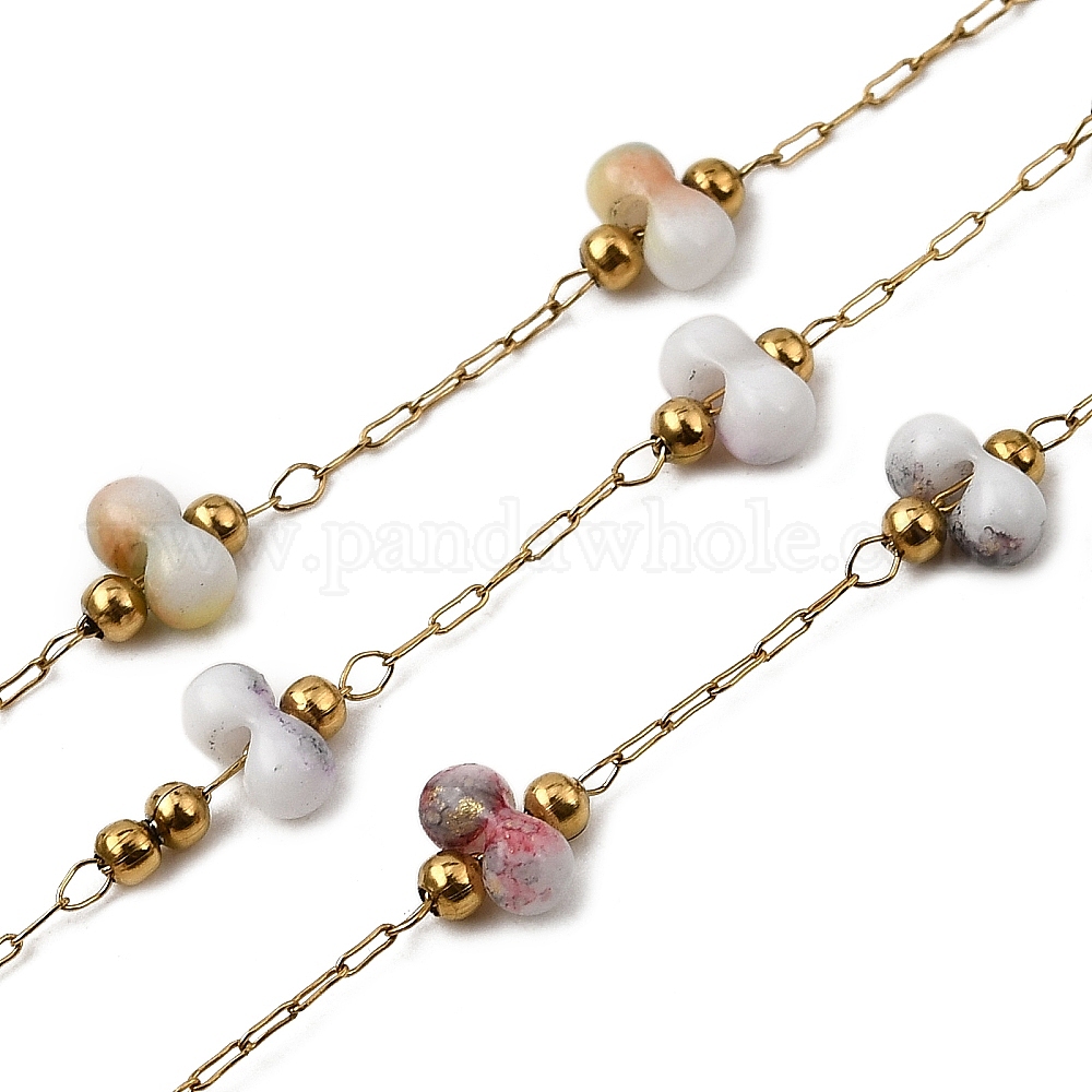 Ручная работа 304 круглые звенья цепочек из нержавеющей стали с фарфоровыми бусинами, пайки, с 316 цепями и катушкой из нержавеющей стали, ионное покрытие (ip), реальный 18 k позолоченный