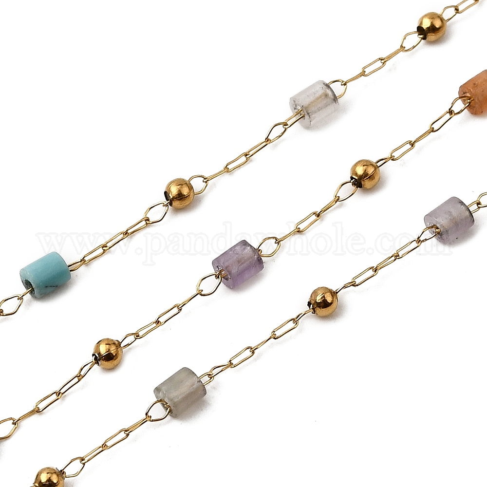 • Настоящее золото 18K Ручная работа 304 цепочки из нержавеющей стали и смешанного камня, пайки, с 316 цепями и катушкой из нержавеющей стали, ионное покрытие (ip), реальный 18 k позолоченный, бисер: 2.5x2 мм & 2 мм