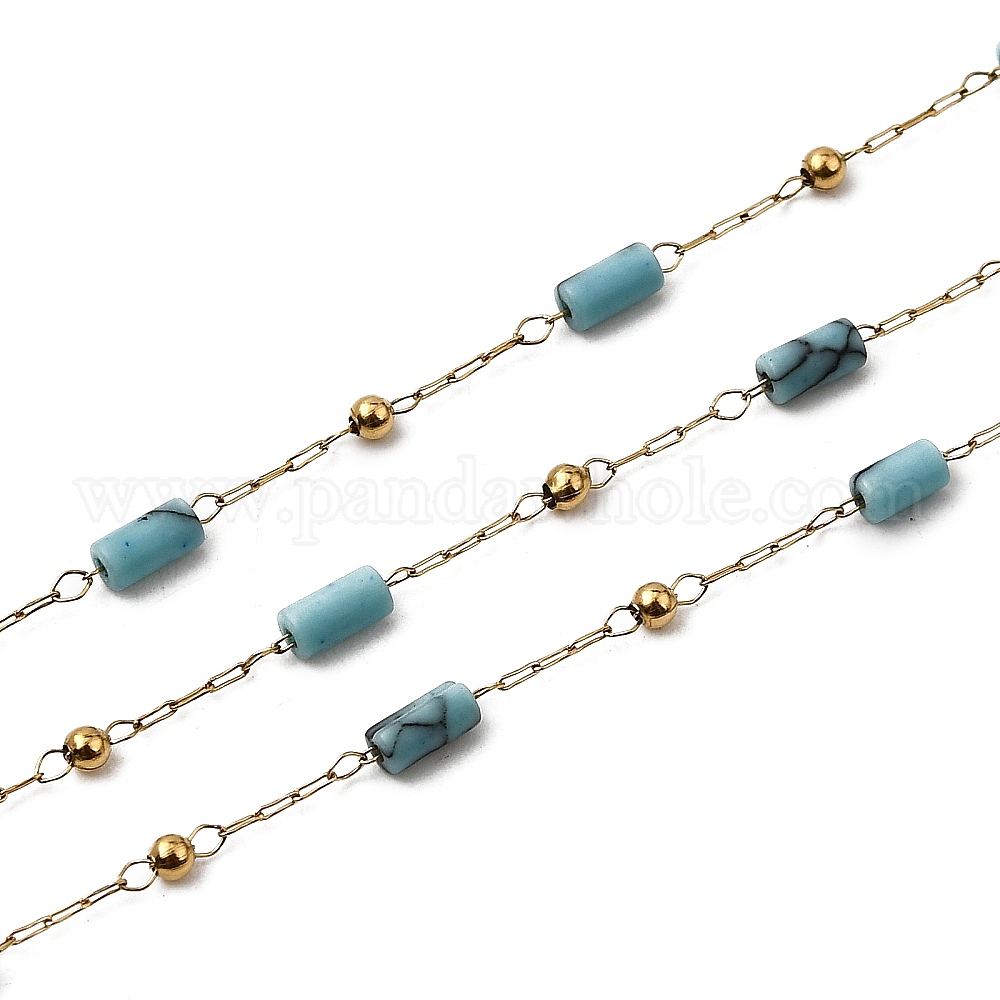 Ручная работа 304 цепочки-столбики из нержавеющей стали с синтетическим бирюзовым оттенком, пайки, с 316 цепями из нержавеющей стали, катушкой и окрашенной оболочкой, ионное покрытие (ip)
