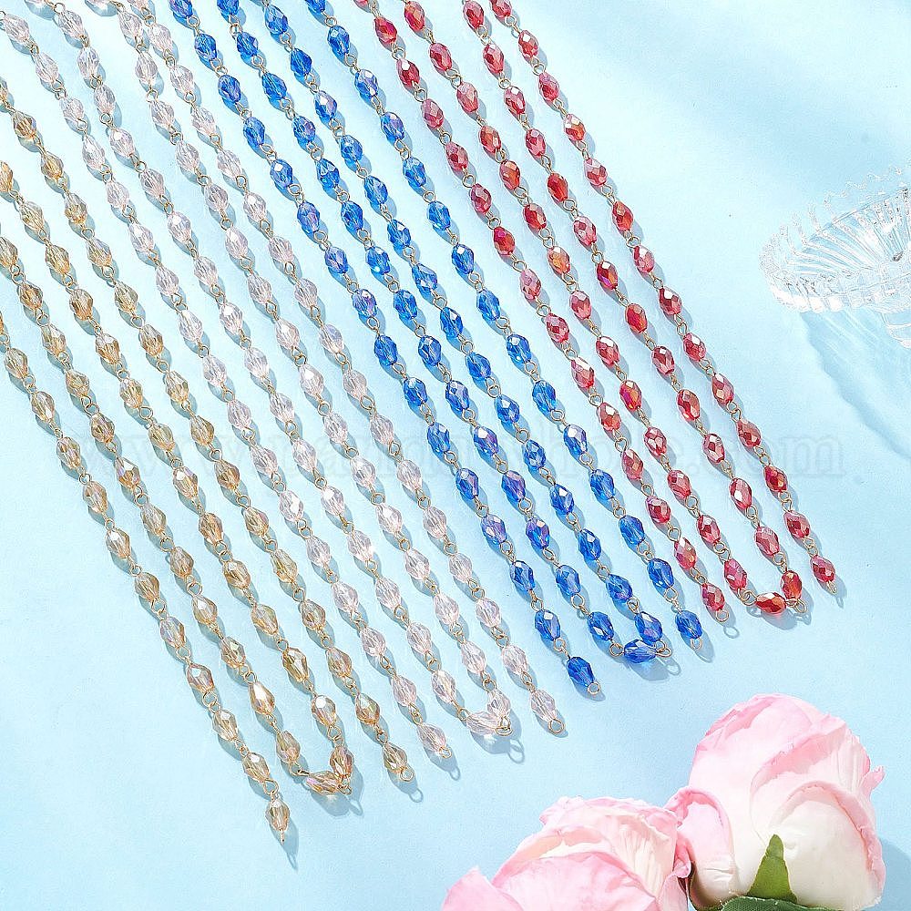 • Красный Цепочки из овальных стеклянных бусин, с 304 фурнитурой из нержавеющей стали, золотые, граненые, красные, 1000 мм