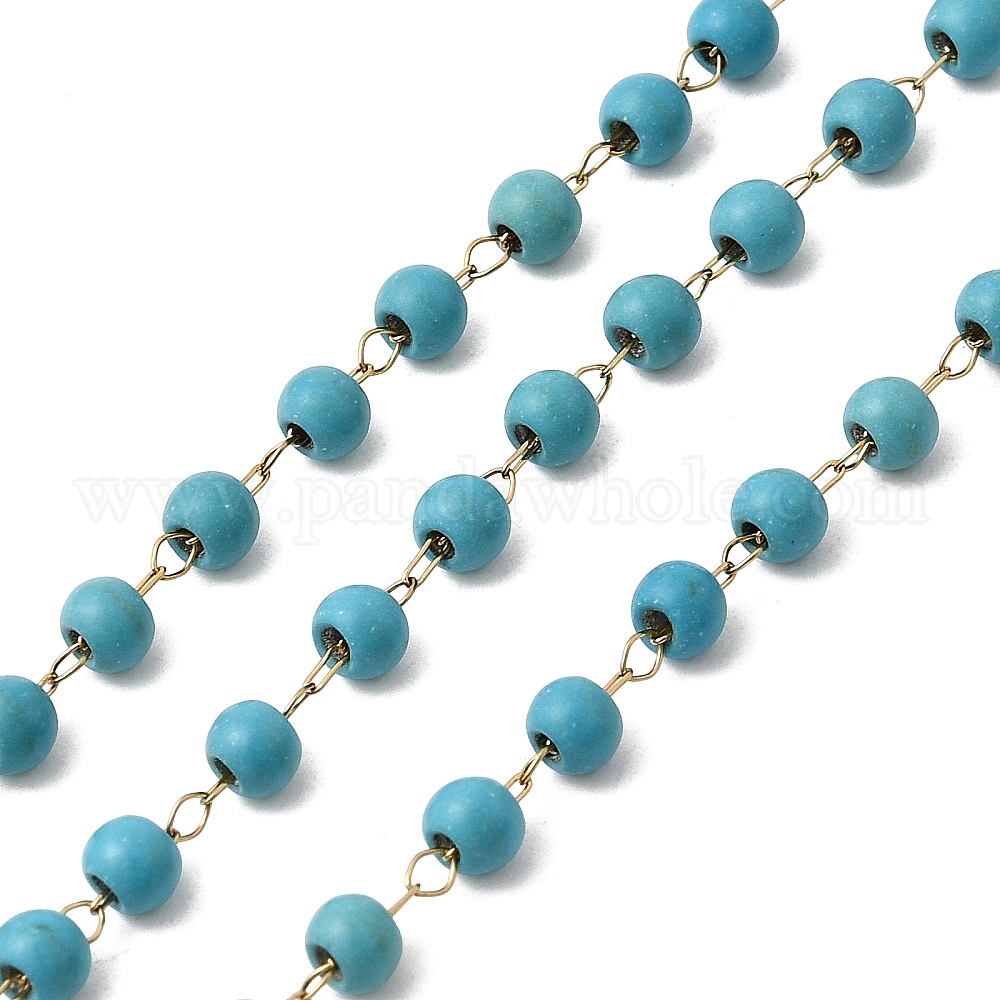 Бусины из синтетической бирюзы ручной работы и 316 цепочки из круглого звена из нержавеющей стали, пайки, с катушкой