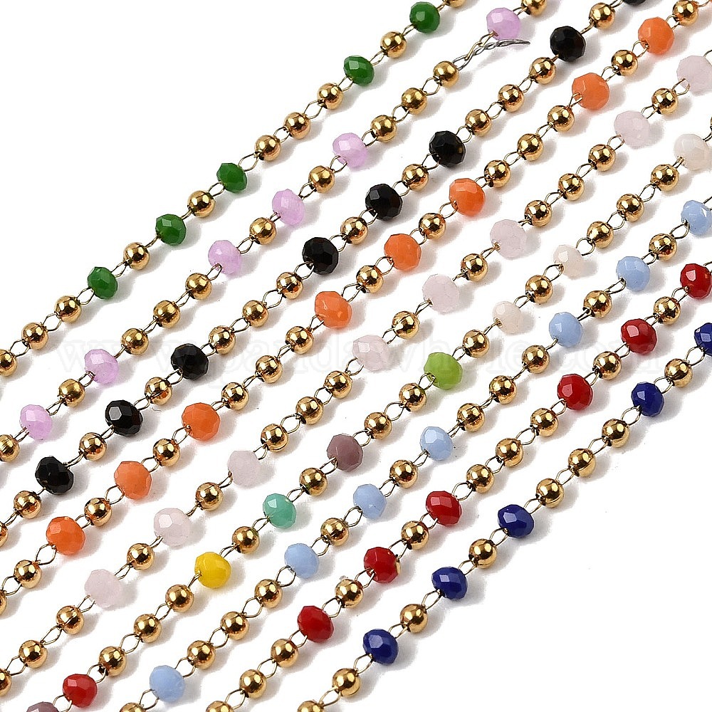 • Разноцветный 304 цепные цепи из нержавеющей стали, рондель, со стеклом, ионное покрытие (ip), реальный 18 k позолоченный, пайки, с катушкой, красочный, 2 мм, около 32.81 футов (10 м) / рулон