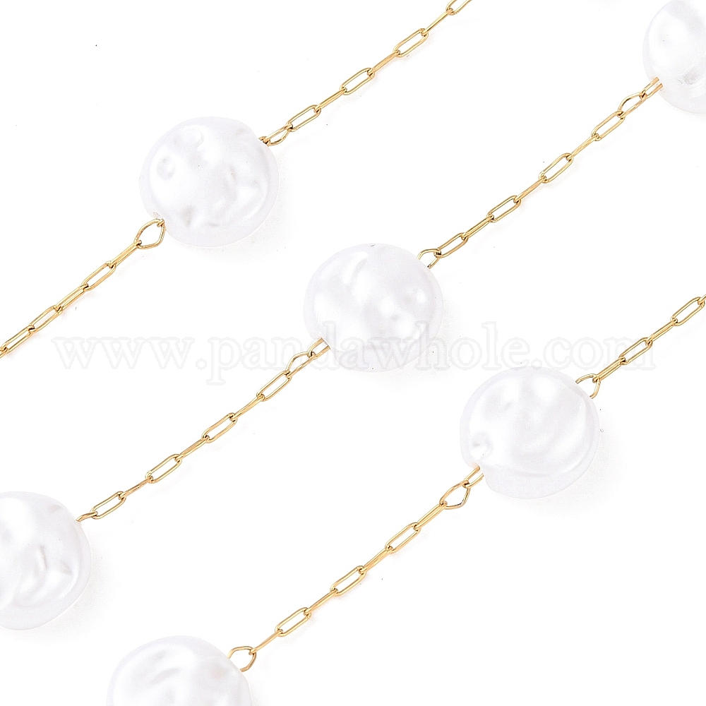 304 Цепи из нержавеющей стали и АБС-пластика с плоскими круглыми бусинами, ионное покрытие (ip), пайки, с катушкой