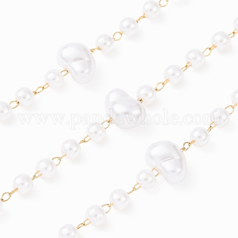 304 Цепи из нержавеющей стали и АБС-пластика с круглыми и крупными бусинами, ионное покрытие (ip), пайки, с катушкой