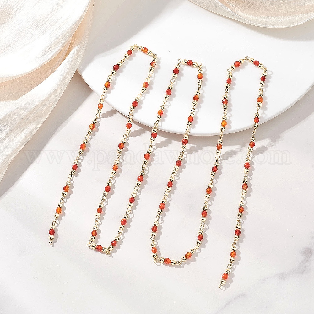Круглые звенья цепочек с драгоценными камнями и бусинами, граненые, с 304 фурнитурой из нержавеющей стали, золотые, несварные