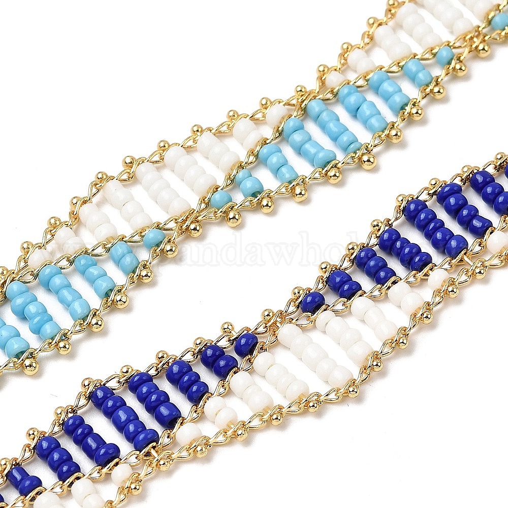 Цельнозерновые бисерные цепочки, с цепочкой из латуни с покрытием из настоящего золота 18k, пайки