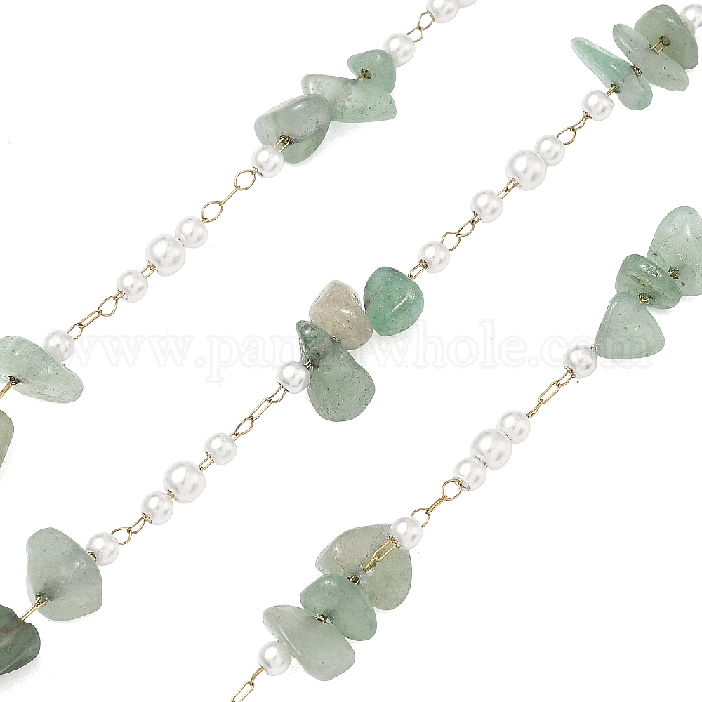 Цепочки ручной работы из натурального зеленого авантюрина и имитации АБС-пластика., с 316 хирургическими цепями из нержавеющей стали, ионное покрытие (ip), несварные, с катушкой