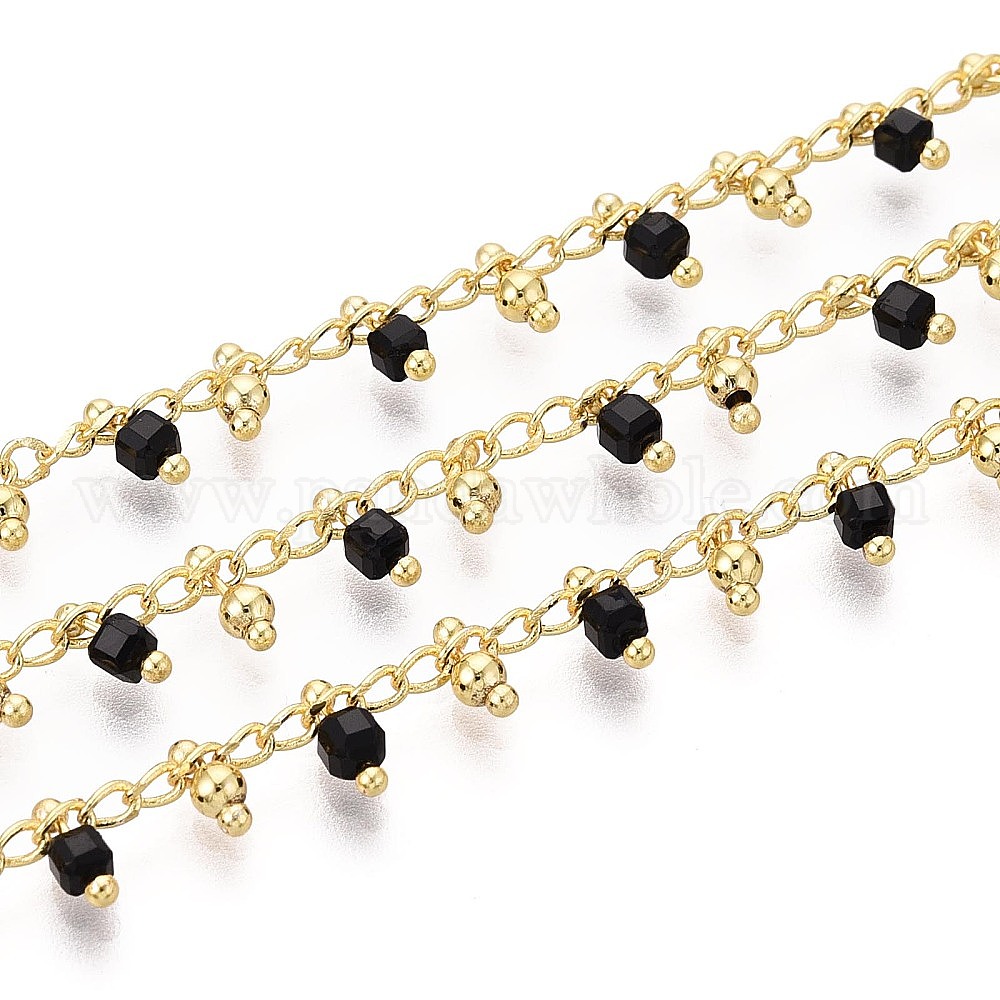 Латунь бордюр цепи, с бусинами из натурального камня, пайки, с катушкой, долговечный, золотые, пайки, кубические