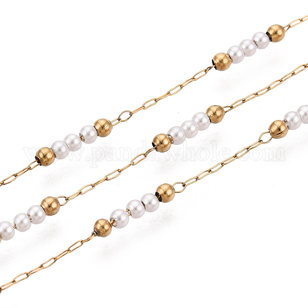 304 кабельные цепи из нержавеющей стали, круглые, с ABS имитации жемчуга, реальный 18 k позолоченный, пайки, с катушкой