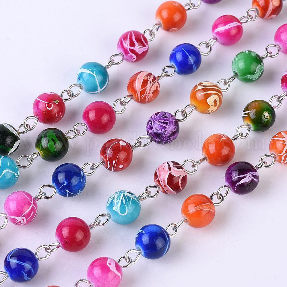 Ручной круглые Drawbench акриловый бисер цепи для ожерелья браслеты делает, с железным штифтом, несварные, платина, 39.3 дюйм