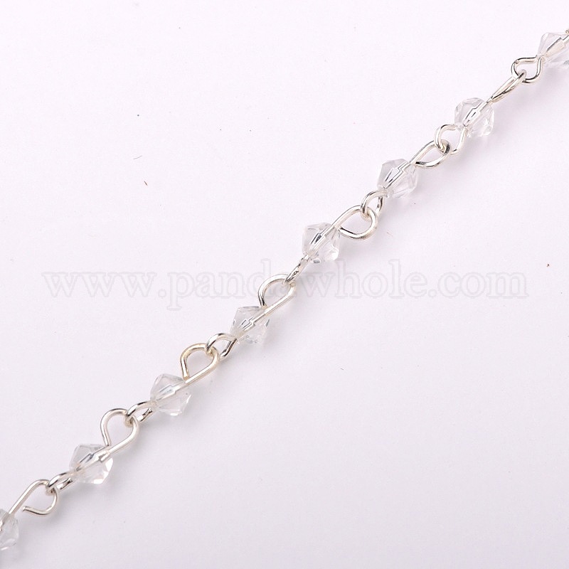 Ручной конус стеклянные бусы цепи для ожерелья браслеты делает, с железным штифтом, несварные, серебряный цвет гальваническим, 39.3 дюйм
