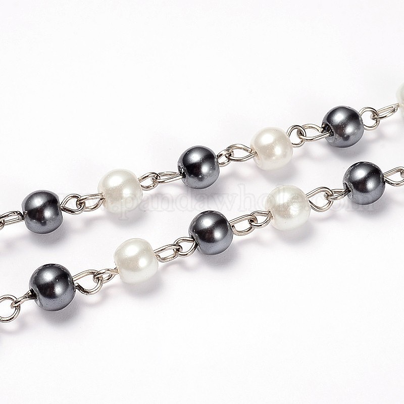 Стекло жемчужные бусины круглые цепи для ожерелья браслеты делает, с платиновым глазом, несварные, 39.3 дюйм