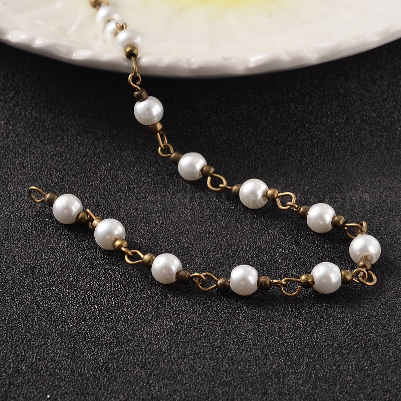 Круглый ручной работы из стекла жемчужина из бисера цепи, несварные, с латунной фурнитурой , античная бронза, 6 мм, около 60 шт / нитка, 39.3 дюйм