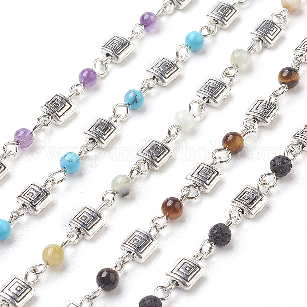 Ручной драгоценный камень бисером цепочки, несварные, с железной иглой и сплавом, старинное серебро и платина
