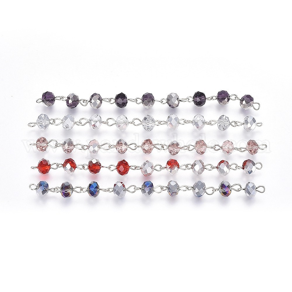 Цепочки из гальванического стекла с бусинами ручной работы, несварные, с платиновым тоном
