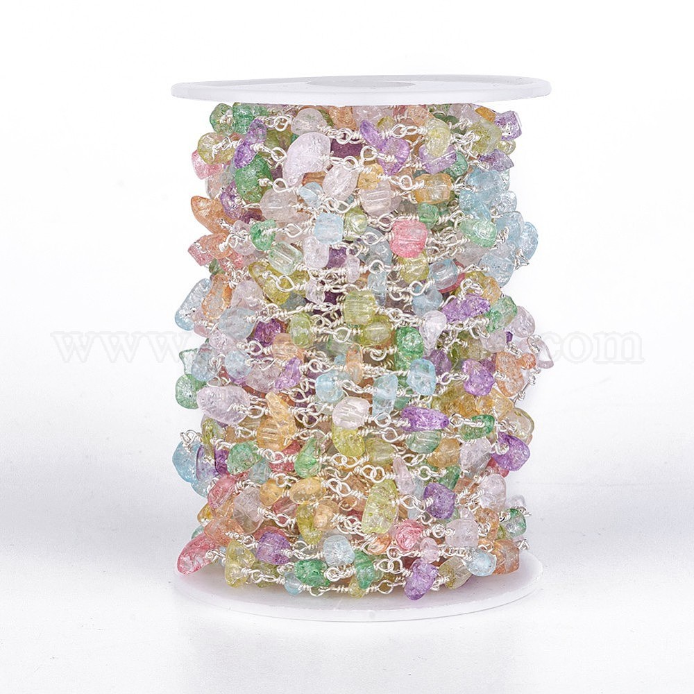 Ручной цепи стекло бисером, несварные, с латунной фурнитурой , с катушкой, чипсы