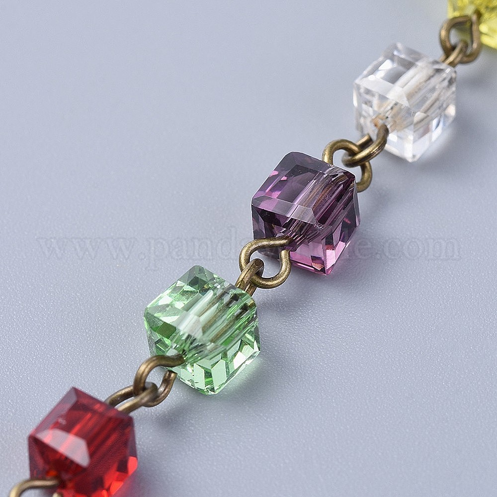 Ручной цепи стекло бисером, несварные, с железными ушками, кубические