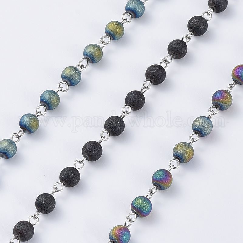 Изготовленные вручную гальванизированные стеклянные бисерные цепи, с железным штифтом, круглые, несварные, платина