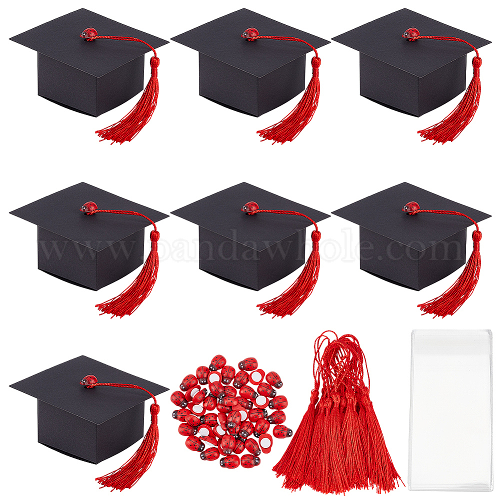 Подарочная бумажная коробка в форме выпускного колпачка: 3x3x1-3/8 дюйм(7.5x7.5x3.5см), 50шт.;