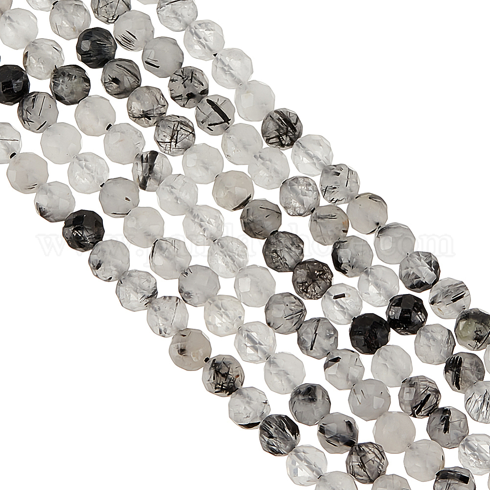 2 нити из натурального черного рутилированного кварца нити из бусин, граненые, круглые