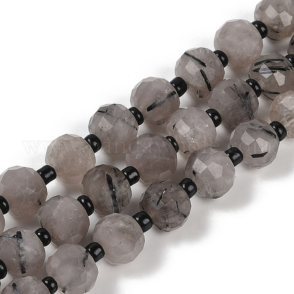Природные Rutilated кварцевые нити бисера, граненые, рондель, с бисером
