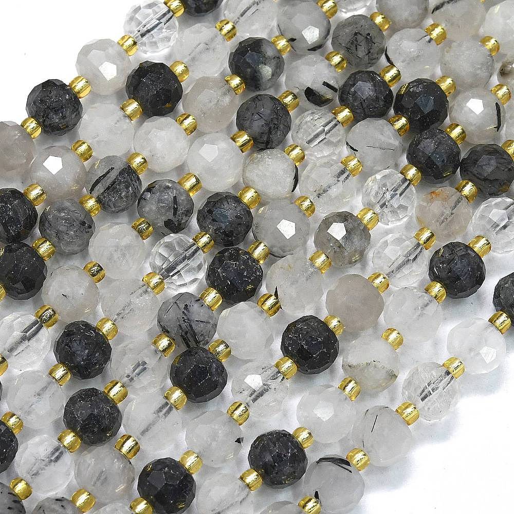 Натуральные черные рутиловые кварцевые нити, с бисером, граненые, фонарь (02Z8MS)