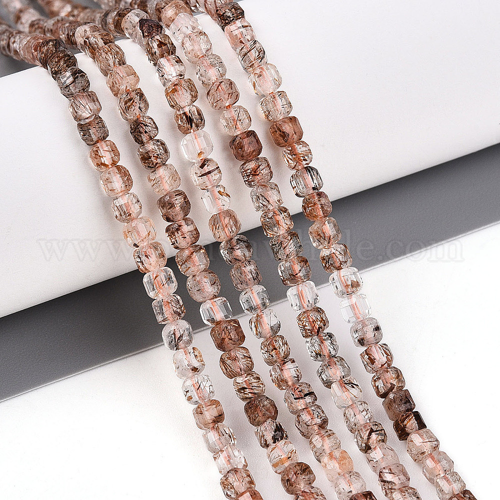 Нити бусин из рутилированного кварца из натурального черного золота, граненый стол, вырезанный куб