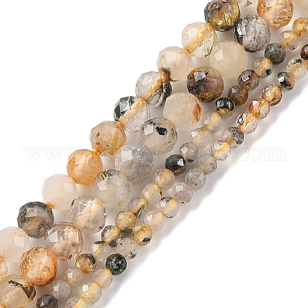 Природные Rutilated кварцевые нити бисера, граненые, круглые