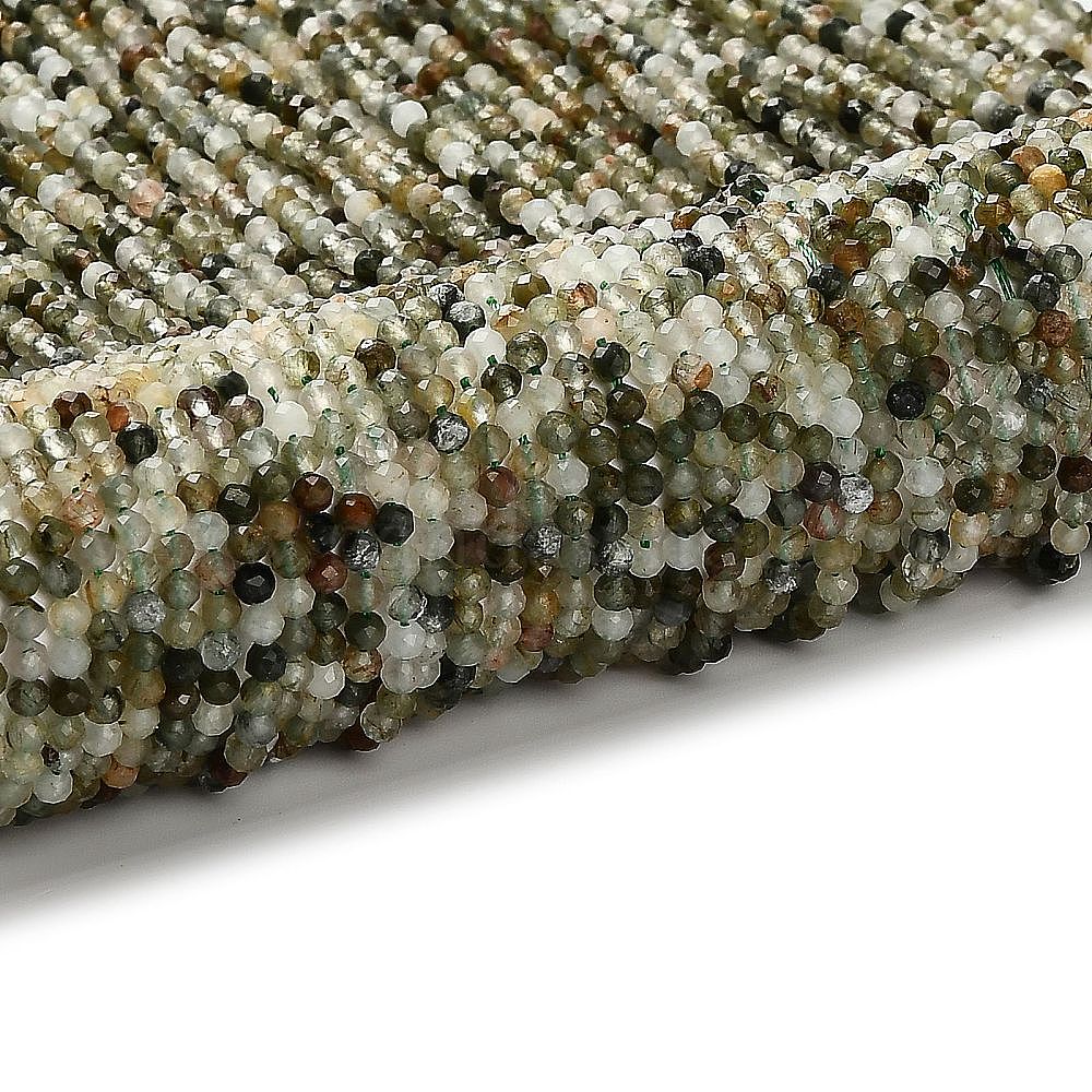Естественный зеленый Rutilated кварцевые нити бисера, граненые круглые