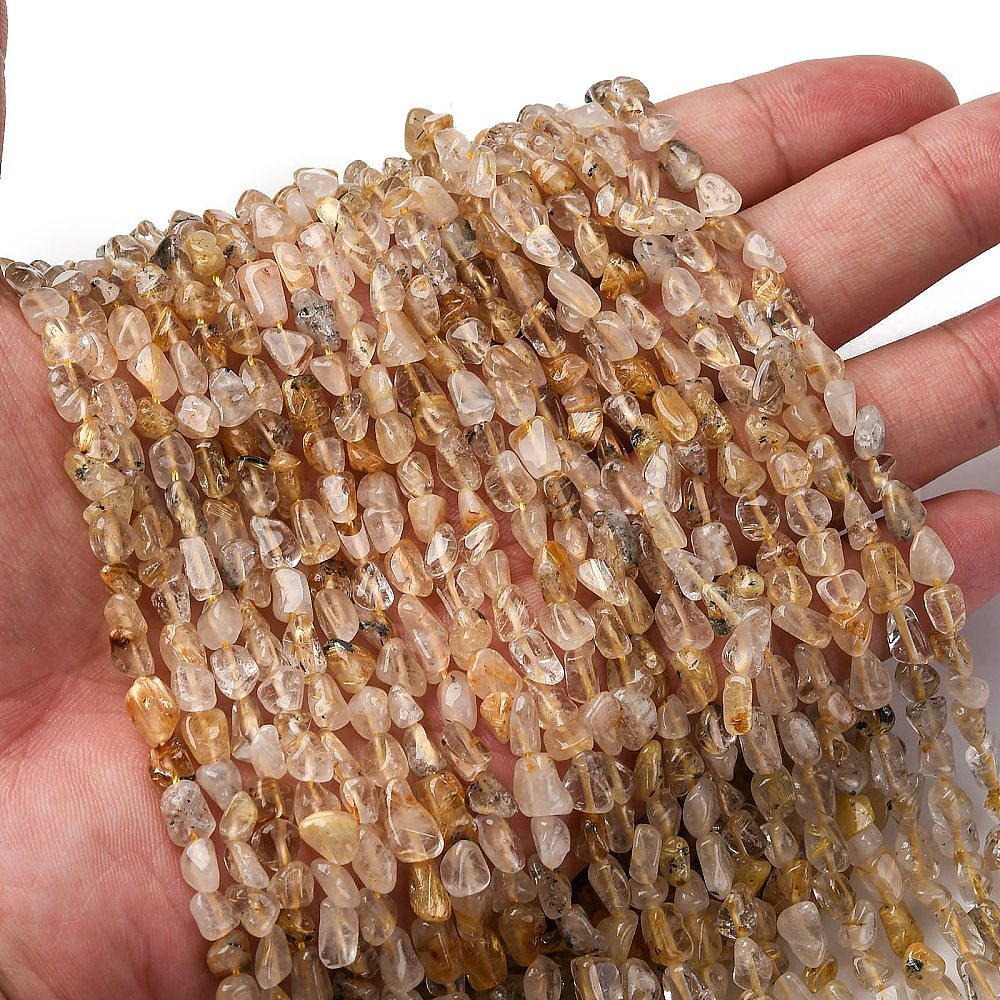 Природного золота Rutilated кварцевые нити бисера, самородки