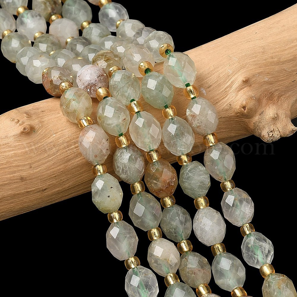 Естественный зеленый Rutilated кварцевые нити бисера, граненые, рис, с бисером