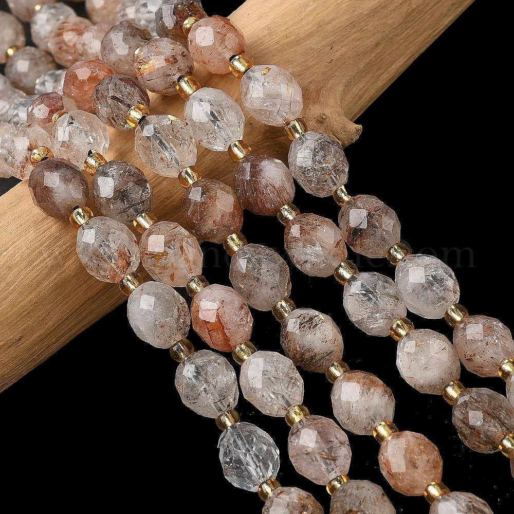 • Rutilated Кварц Нити бусин из натурального медного рутилированного кварца, граненые, рис, с бисером, 7.5~8x6~7.5 мм, отверстие : 0.8~1 мм, около 36~40 шт / нитка, 15.55~15.75'' (39.5~40 см)