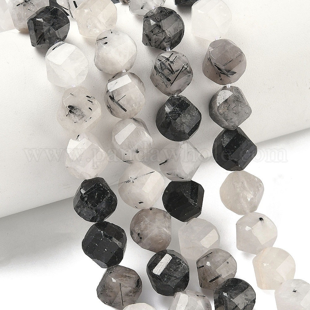 • Кварц Турмалинизации  Натуральный турмалированный кварц / черный рутиловый кварц, граненые, твист, 10~10.5x9.5~10.5x9.5~10.5 мм, отверстие : 1 мм, около 38~40 шт / нитка, 14.96~15.35'' (38~39 см)
