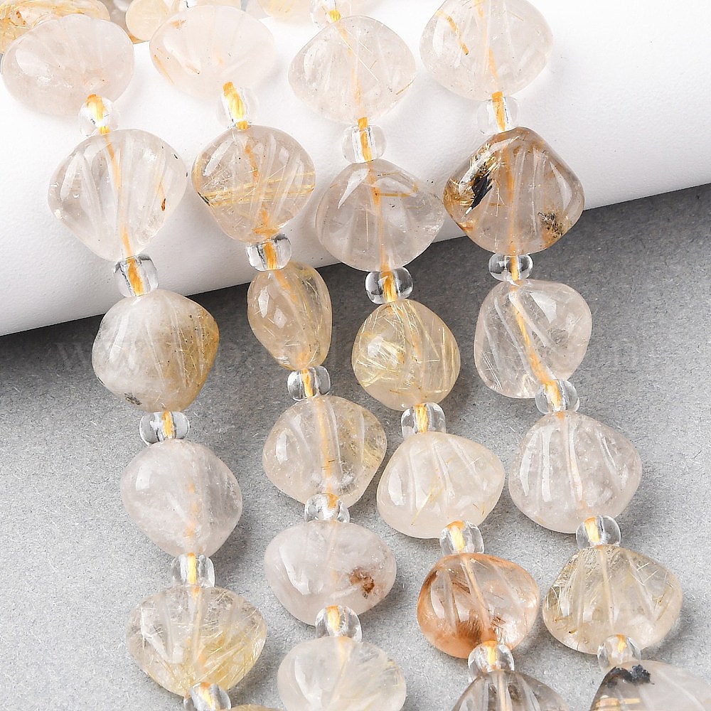 Нити резных бусин из натурального золота с рутиловым кварцем, формы раковины, с бисером
