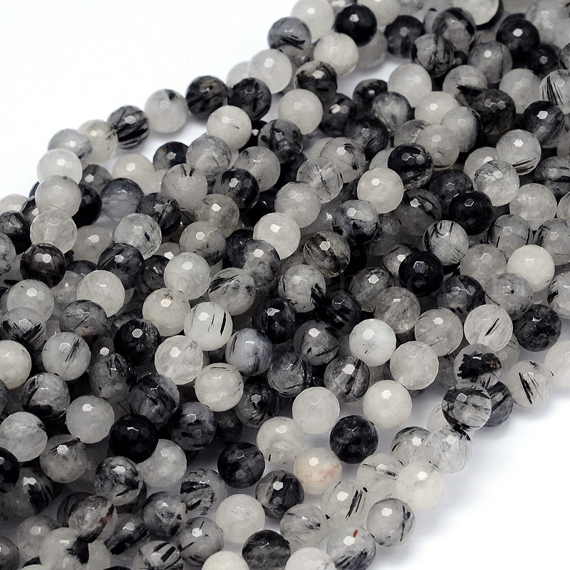 Круглые граненые натуральные Rutilated кварцевые нити бисер