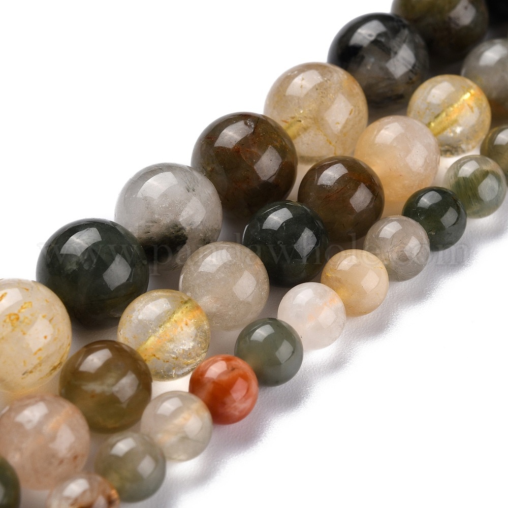 Природные Rutilated кварцевые нити бисера, круглые
