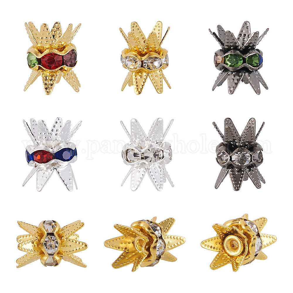 120 шт. 6 цвета цинковый сплав шарик колпачок, со стразами, Двухсторонняя, цветок, мульти-лепесток