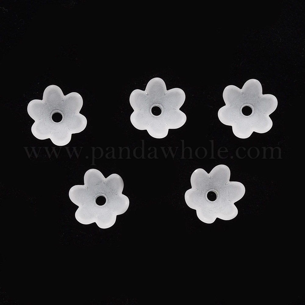 • Белый Прозрачные колпачки акриловая бисера, матовые, цветок, белые, 14x13x6 мм, отверстие : 2 мм