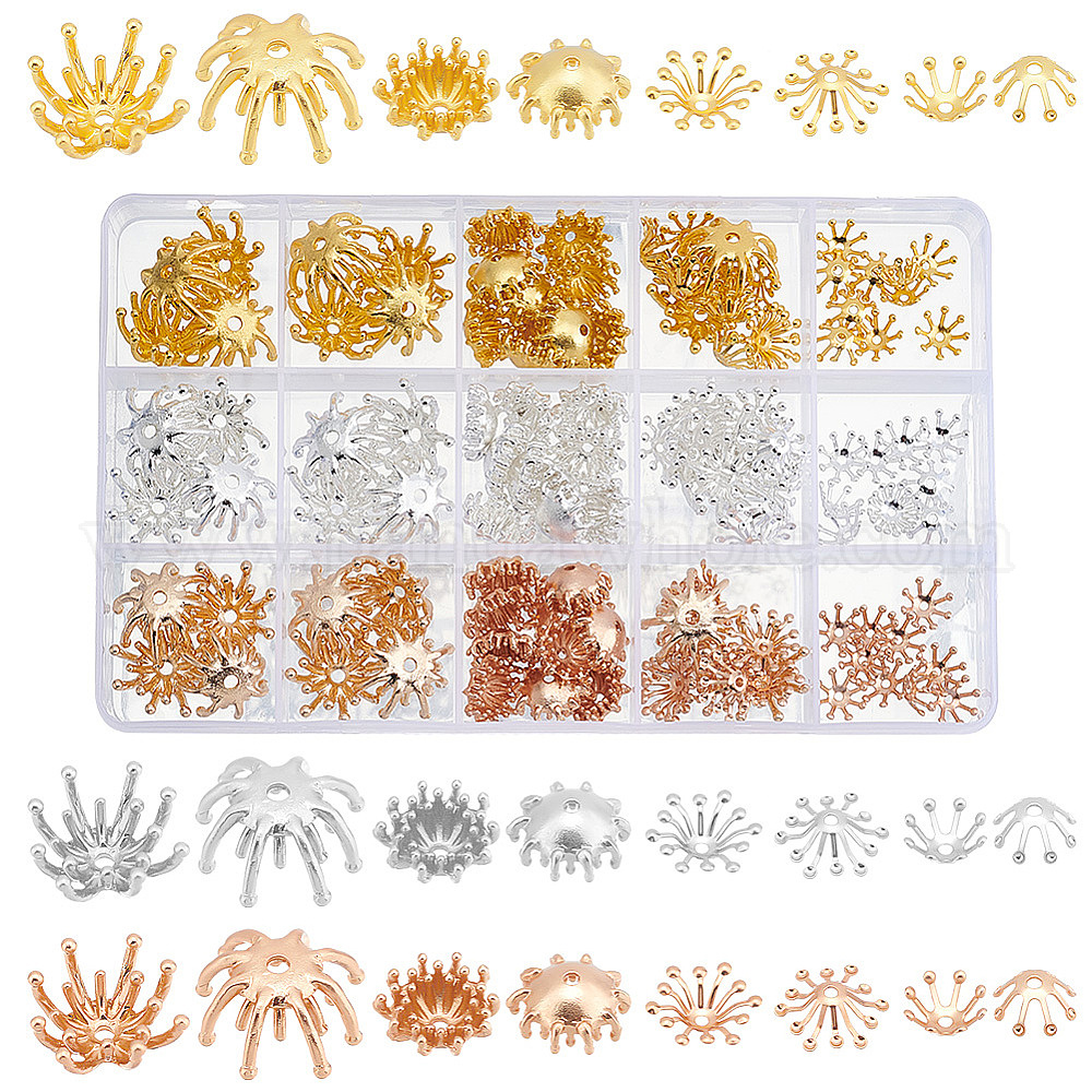 120 шт 12 стиль латунные колпачки для бусинок, мульти-лепесток, цветок