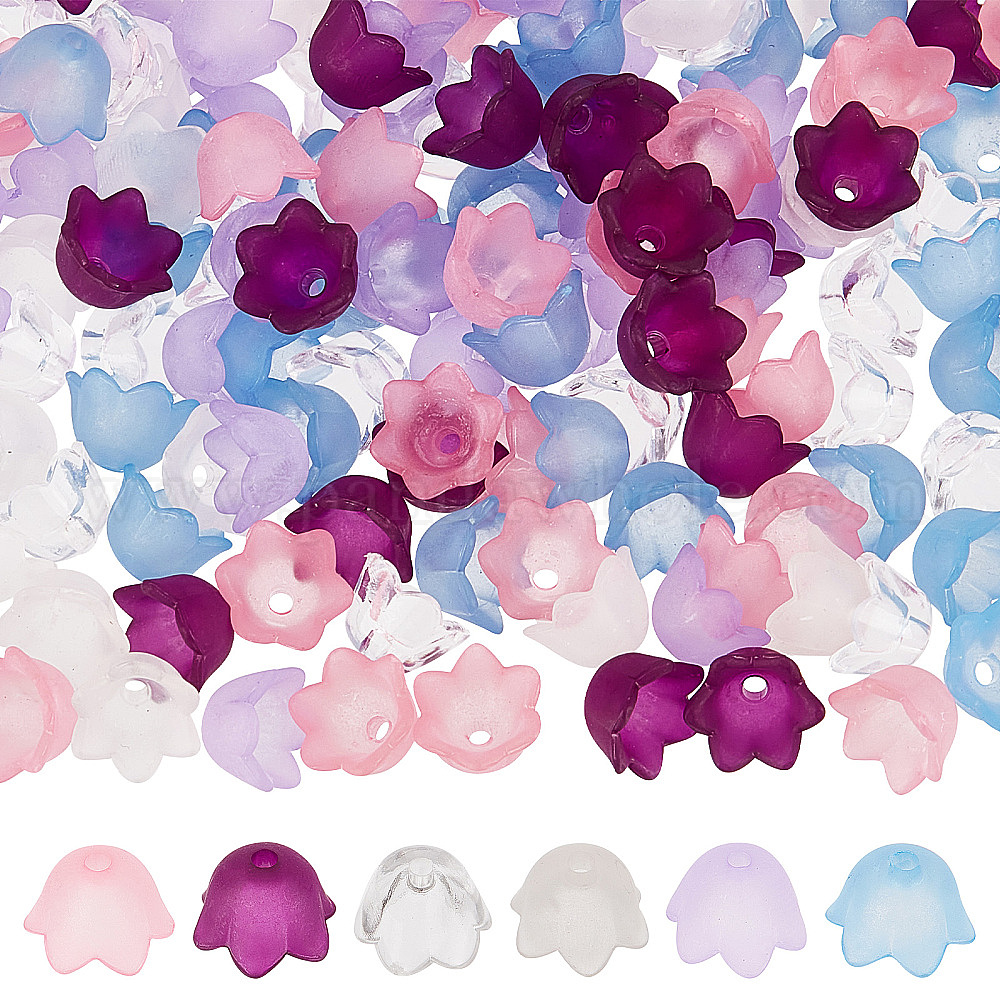 600шт 6 цвета прозрачные акриловые бусины и колпачки для бусин, для изготовления ювелирных изделий, ландыш и тюльпан