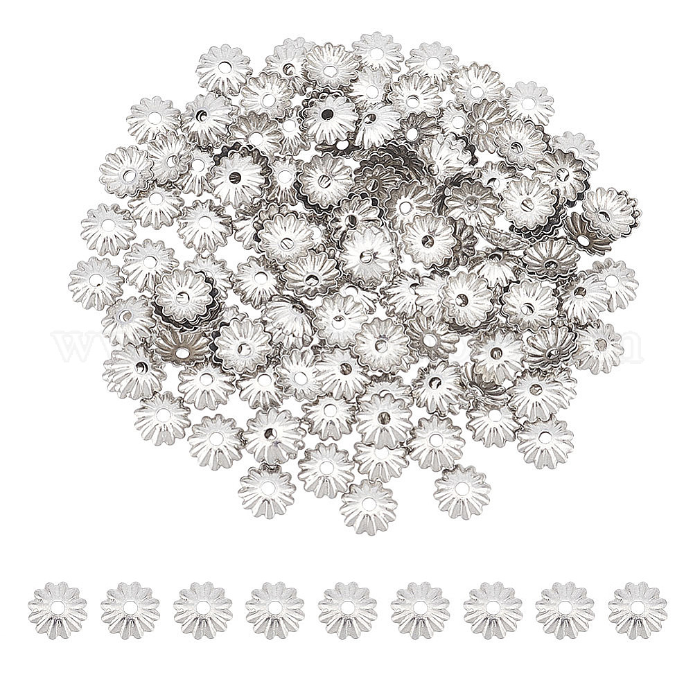 • Нержавеющая Сталь Цвет 304 из нержавеющей стали шарик крышки, мульти-лепесток, цветок, цвет нержавеющей стали, 5.5x5.5x1.2 мм, отверстие : 1.2 мм, 300 шт / коробка