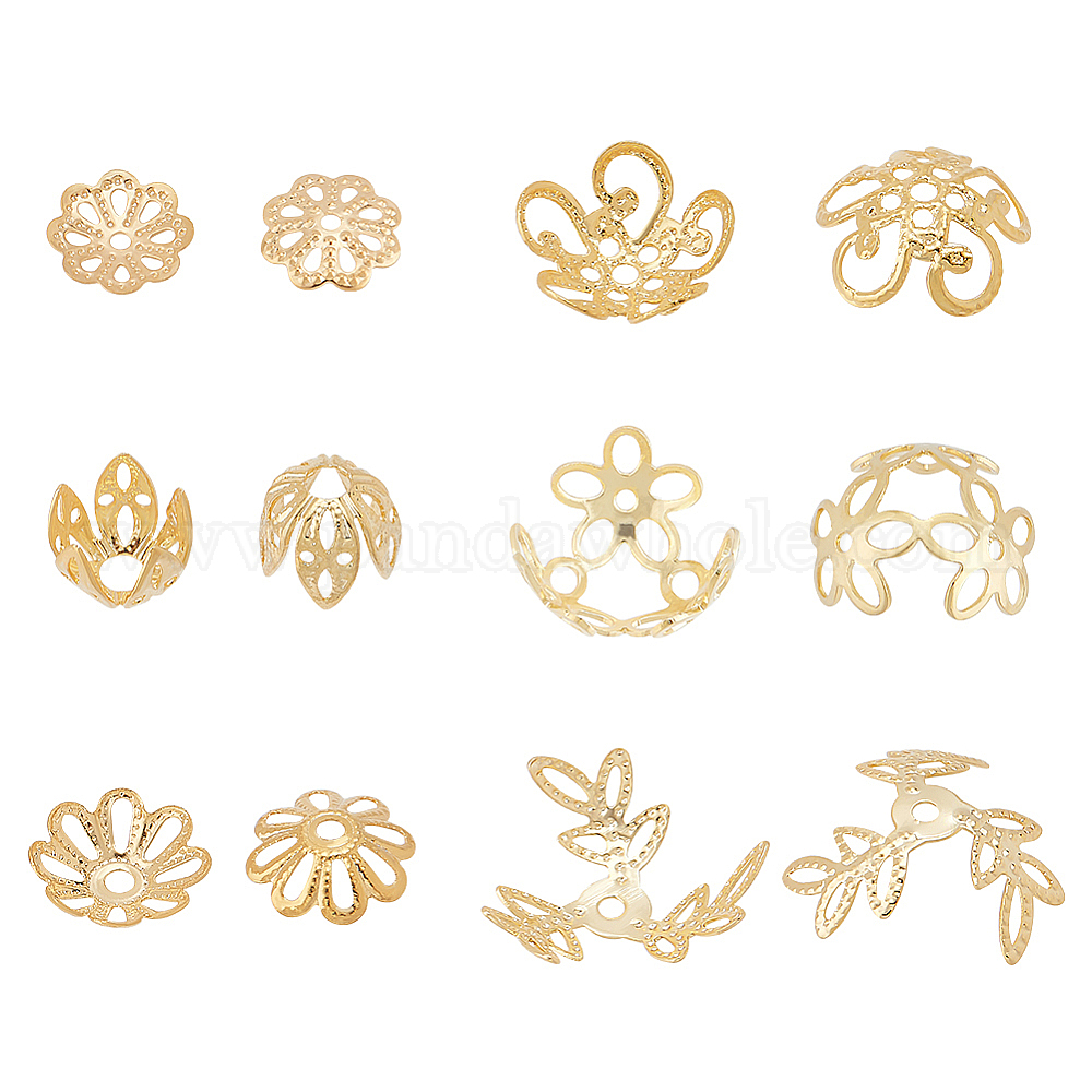 60 шт 6 стиль латунные колпачки для бусинок, цветок