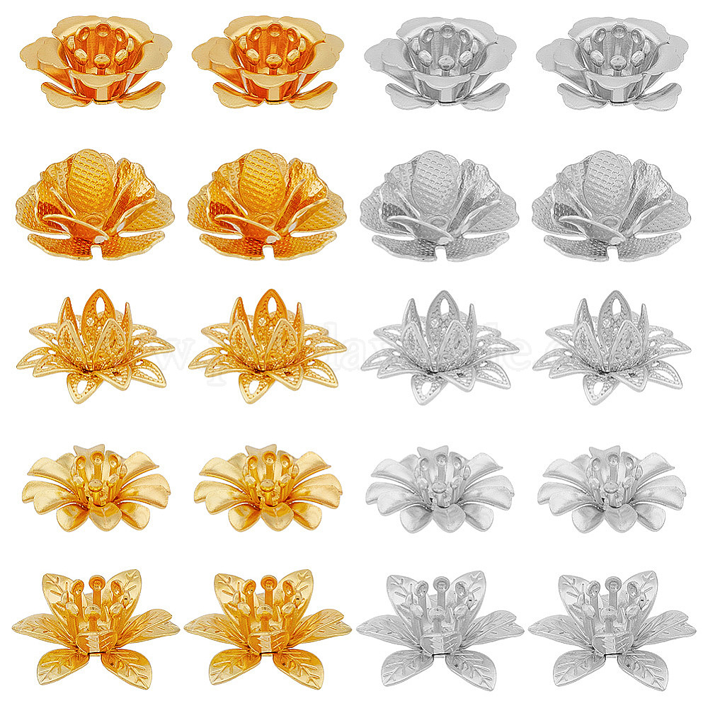 60шт 10 стиль 3d латунные колпачки для бусин, цветок, мульти-лепесток
