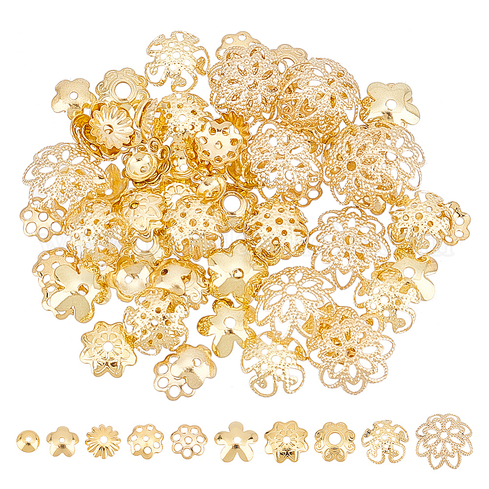 • Золотой 100 шт. 10 стили 304 колпачки из нержавеющей стали, многолепестковые и 5-лепестковые и безлепестковые, цветок, золотые, 4~8x1~3 мм, отверстие : 0.8~1.8 мм, 10 шт / стиль