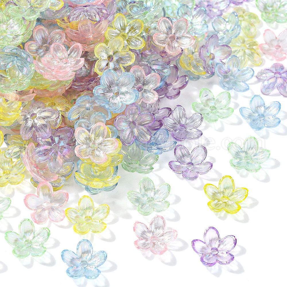 300 шт прозрачные акриловые бусины, AB цвет, цветок