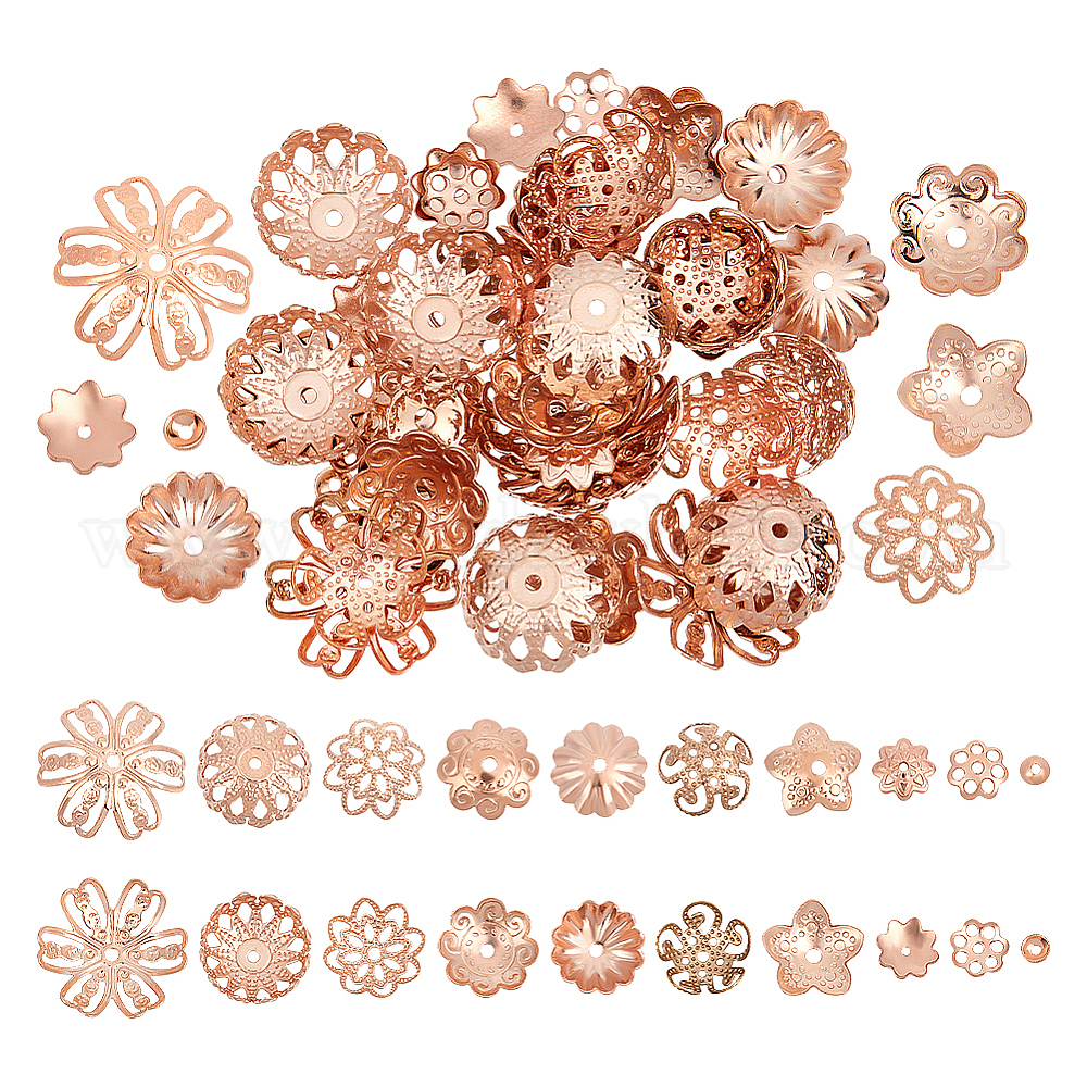 60 шт. 10 стили 304 колпачки для бусин из нержавеющей стали, цветок и круглый и звезда, мульти-лепесток