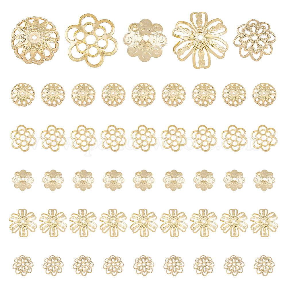 50 шт. 5 стили 304 и 201 колпачки для бусин из нержавеющей стали, цветок, мульти-лепесток