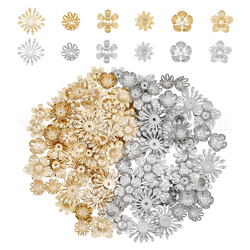 120 шт. 12 стили 304 колпачки для бусин из нержавеющей стали, цветок