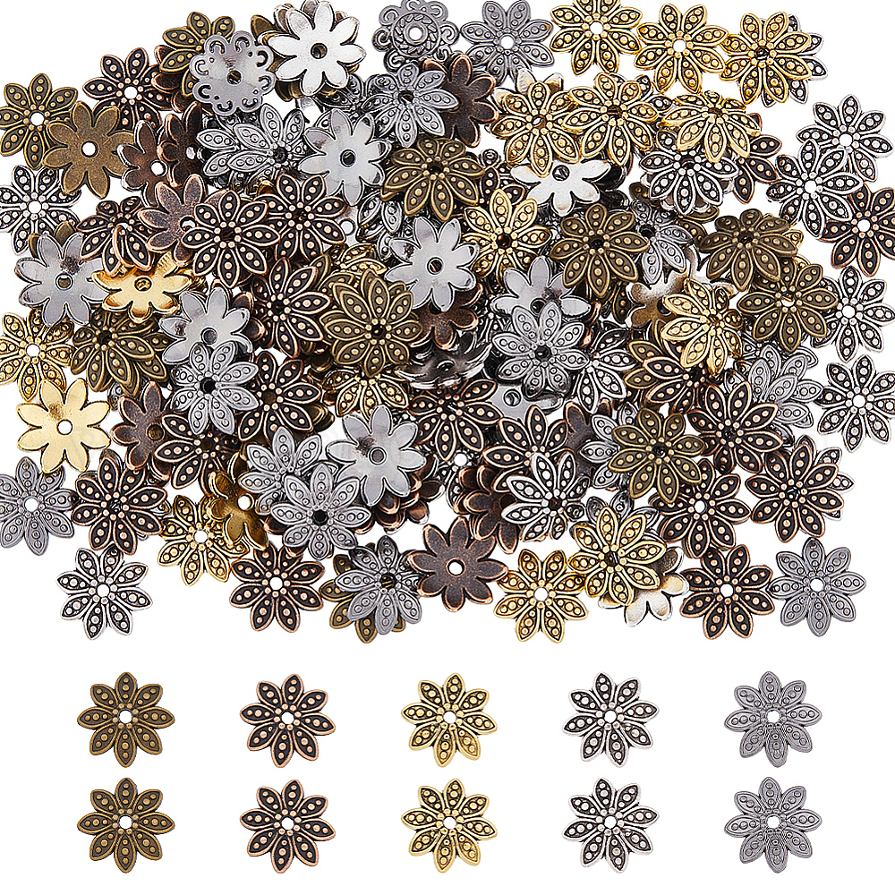 300шт 5 цвета 8-лепестки тибетского сплава колпачки для цветов из бисера