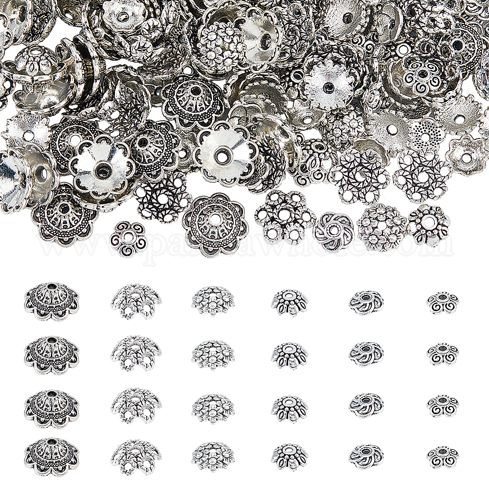 240 шт 6 стили тибетский стиль цинковый сплав цветочные бусины колпачки